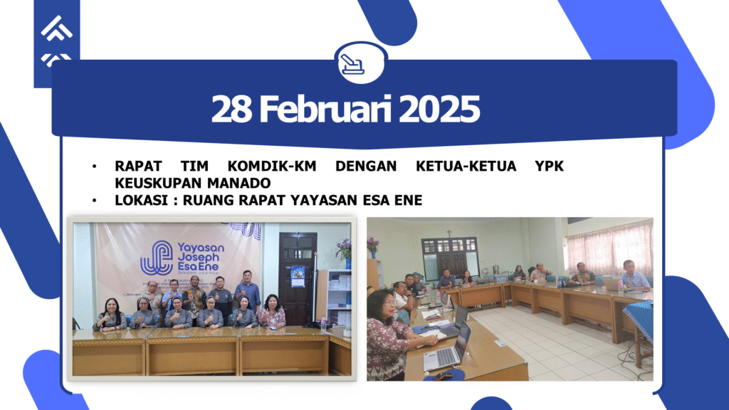 - Pertemuan Tim Kerja Komdik Keuskupan Manado (Komdik-KM) dengan Pengurus MPK dan Ketua – Ketua Yayasan di Keuskupan Manado
