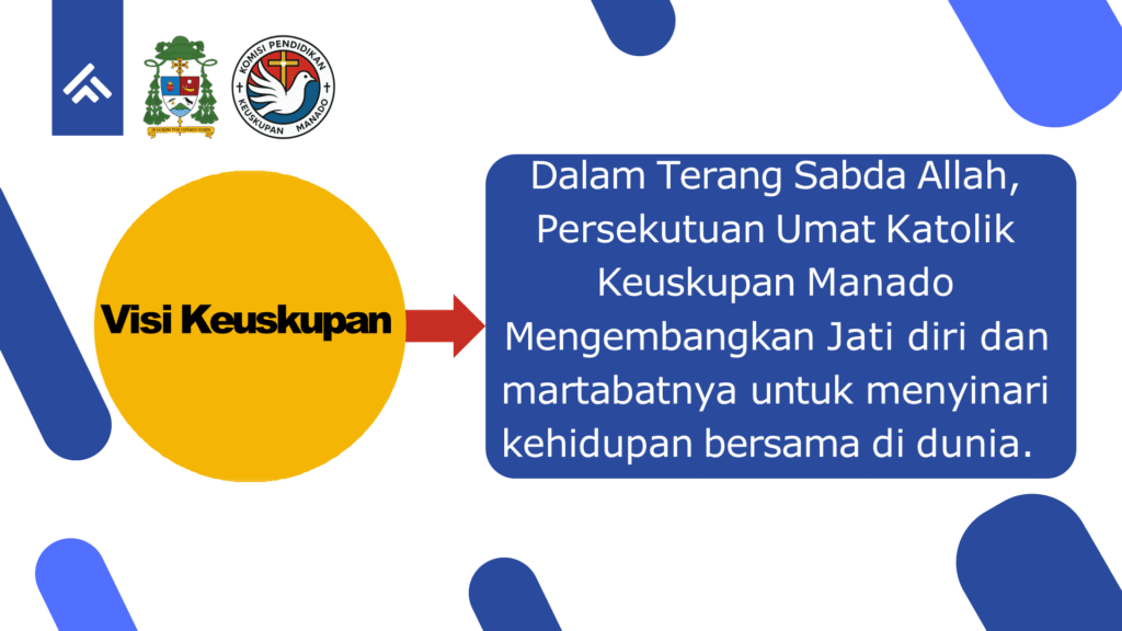 Dalam terang sabda Allah, persekutuan umat Katolik Keuskupan Manado mengembangkan jati diri dan martabatnya untuk menyinari kehidupan bersama di dunia.