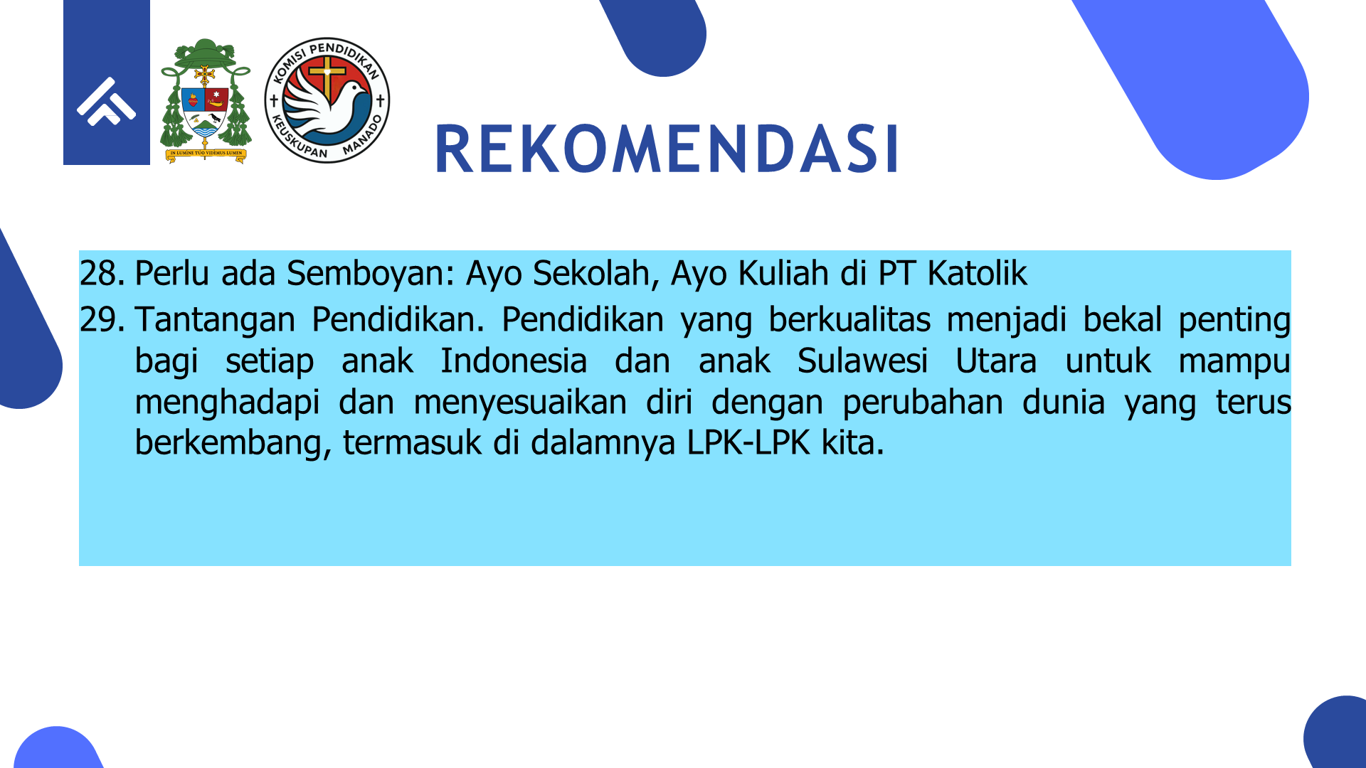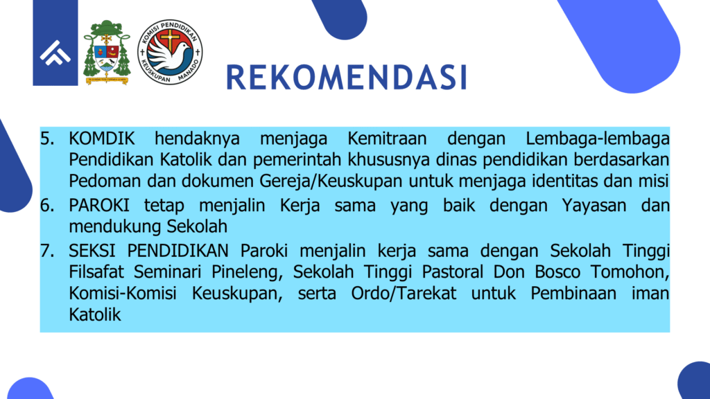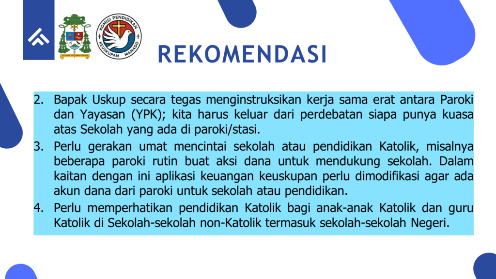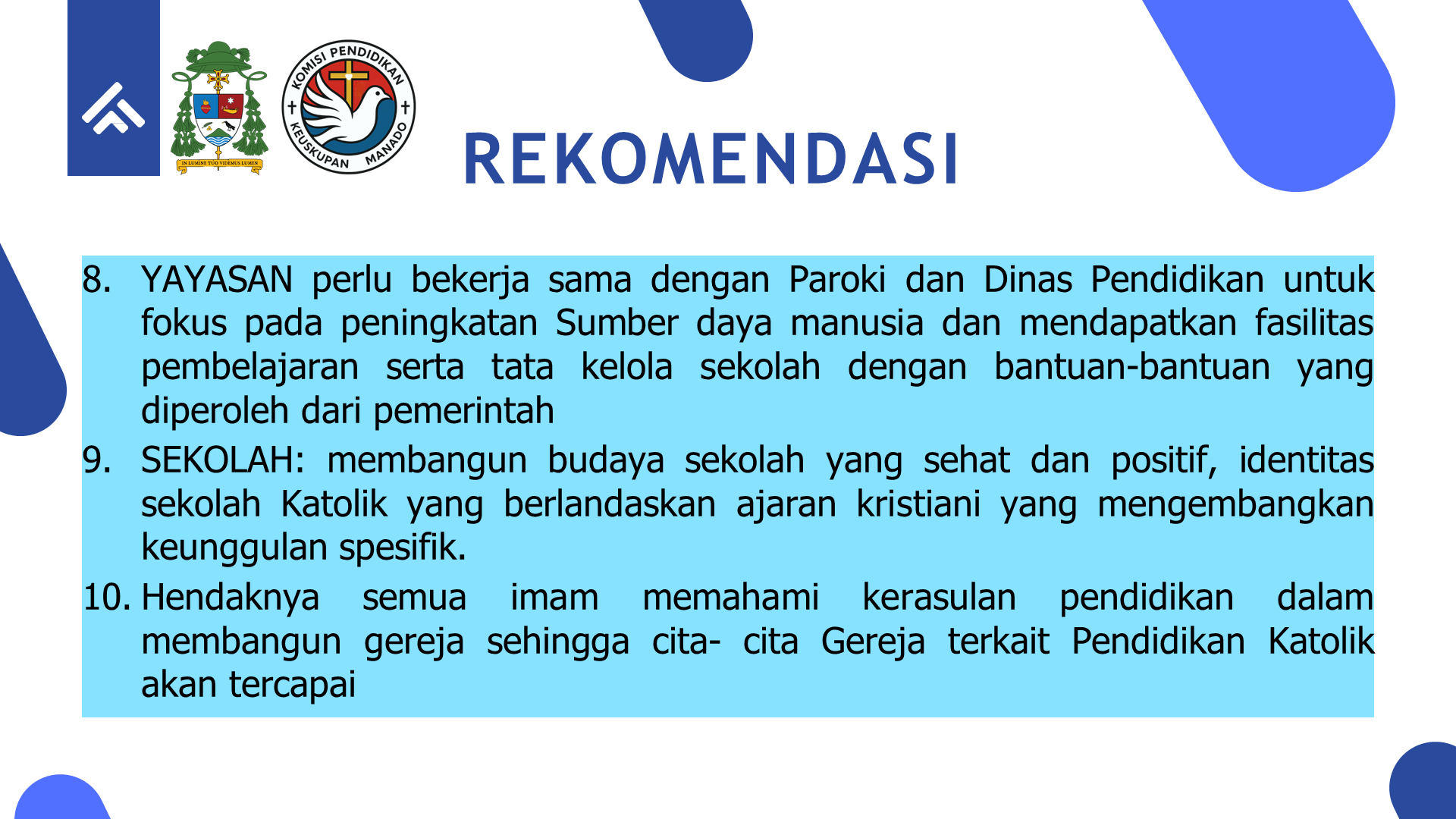 - Penyusunan Buku Pedoman Komisi Pendidikan Keuskupan Manado