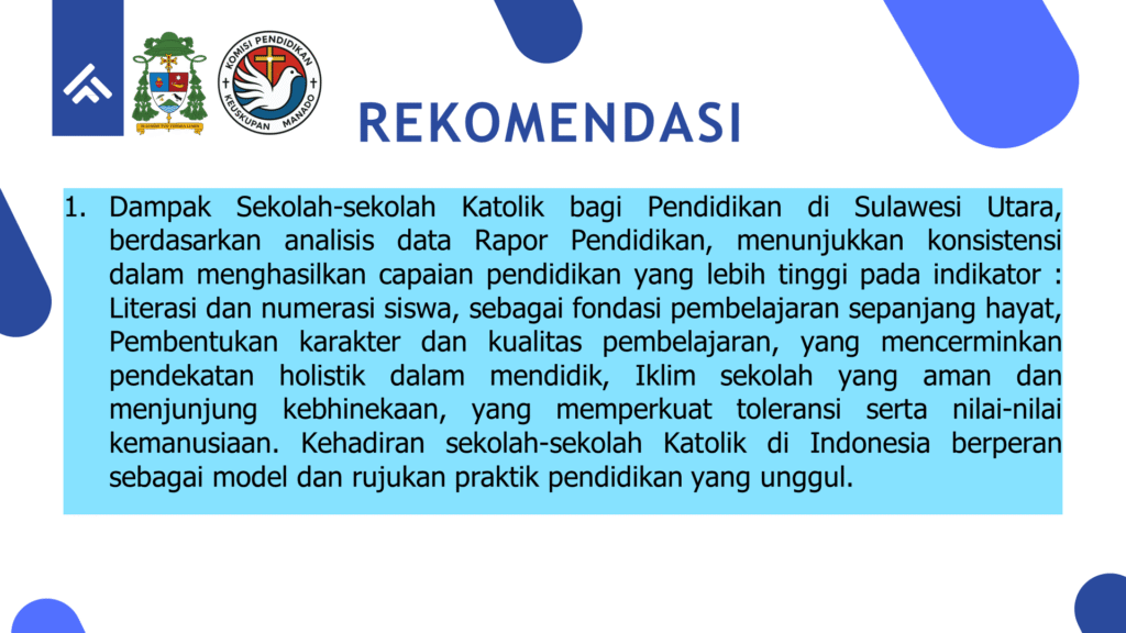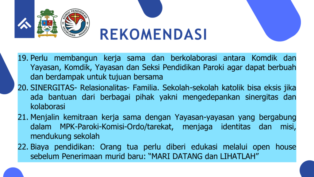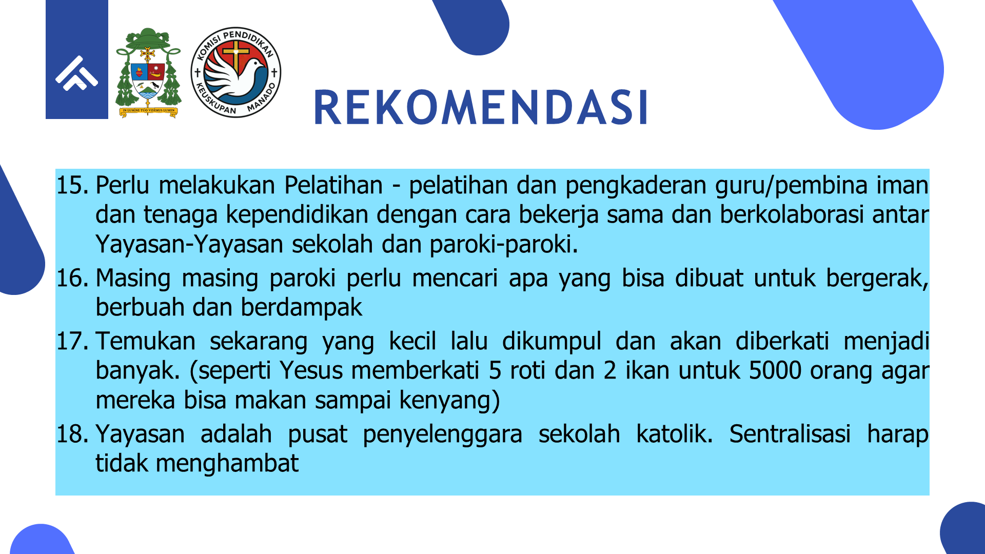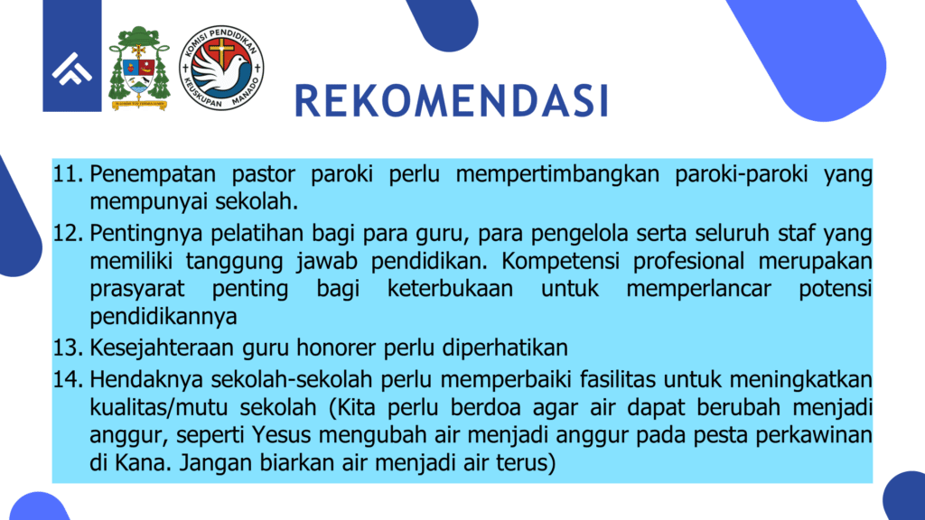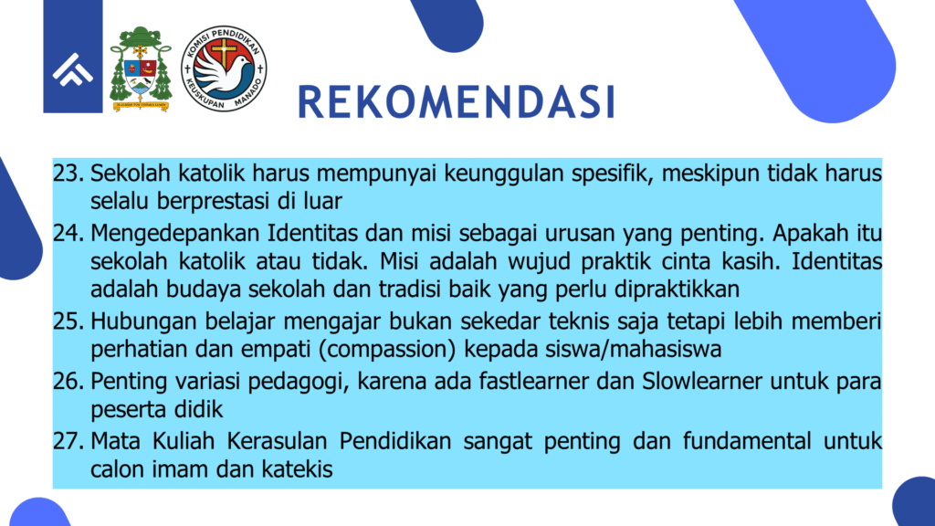 - Penyusunan Buku Pedoman Komisi Pendidikan Keuskupan Manado