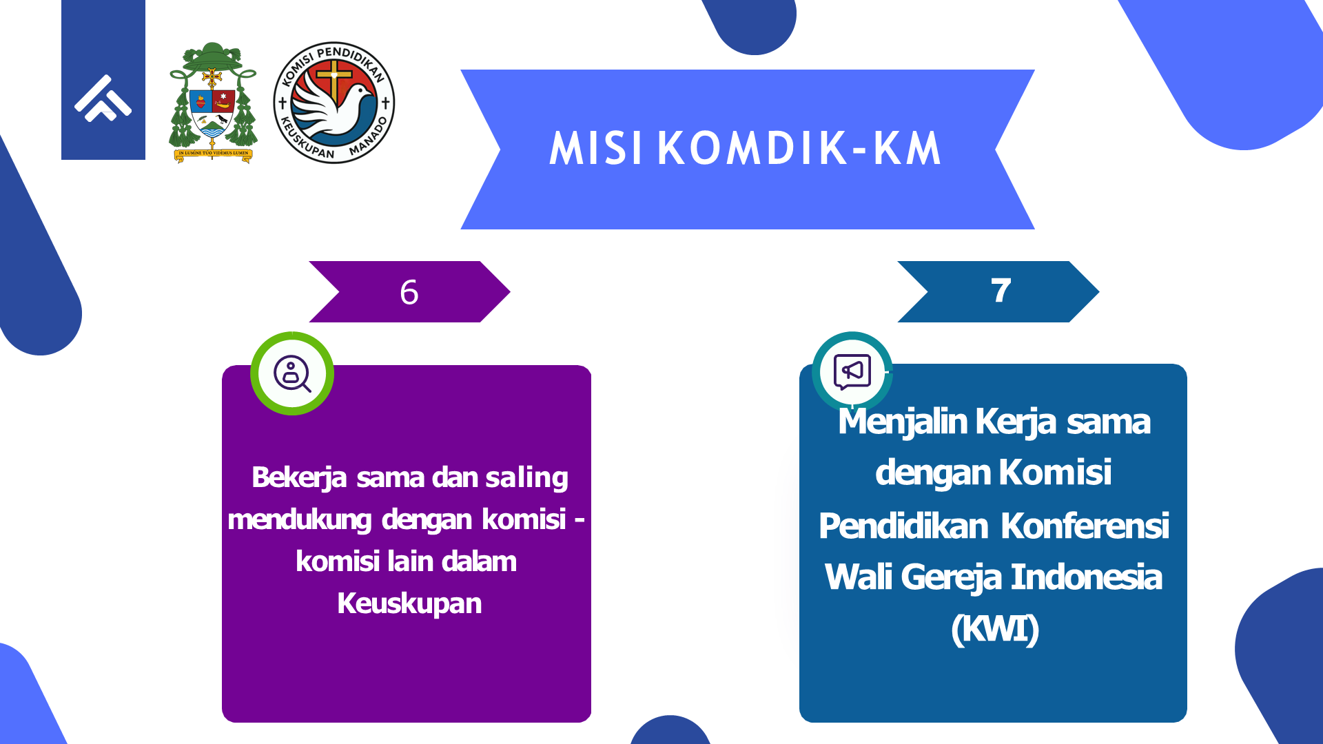 - Memberi arahan dan mengkoordinasikan bidang pelayanan Pendidikan dalam pastoral Pendidikan
